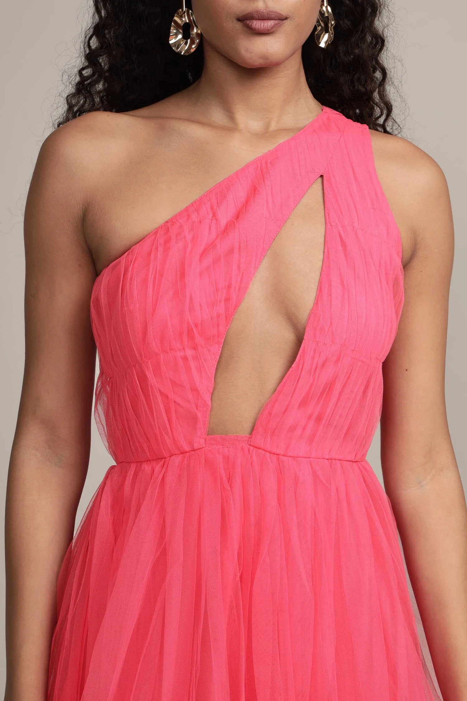 Lace & Beads Aurelia Pom Pom Mini Dress. This big ruffle hem dress is here to take your style game up a notch! Say goodbye to ordinary and hello to extraordinary with this one-shoulder pink mini dress.