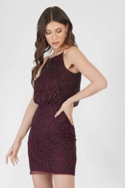 Mina Embellished Mini Dress In Burgundy