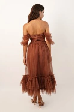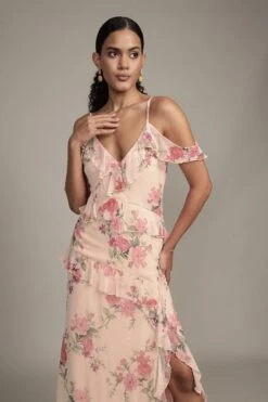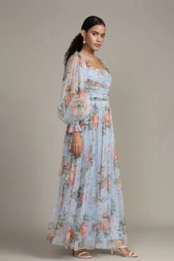 Metallic accents dance amidst the print, casting a shimmering spell that captivates the eye and elevates your ensemble. This summer gown is the ultimate occasion dress and an absolute must-have.